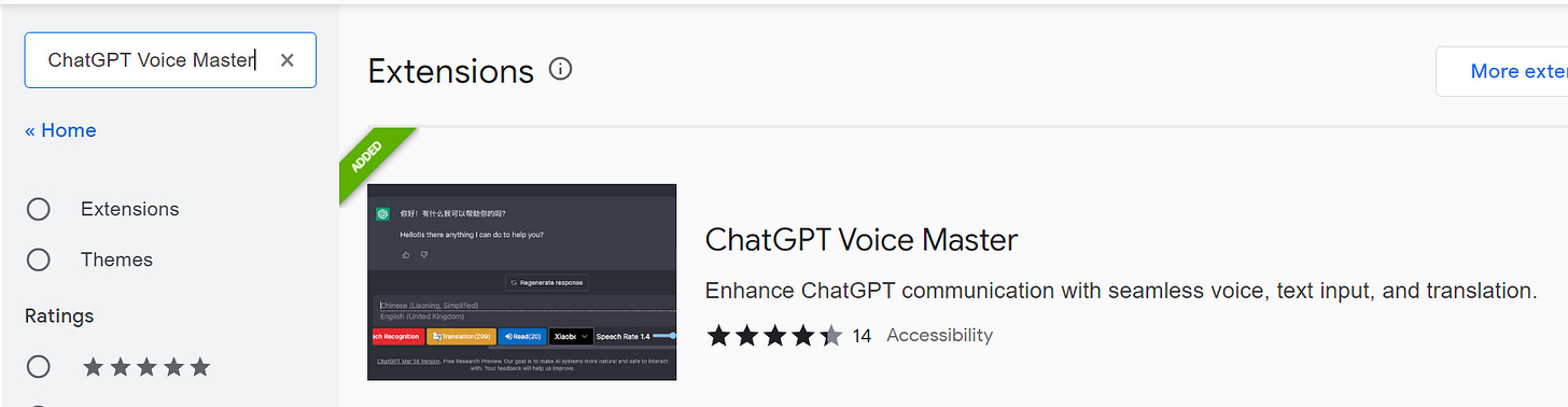 6. Search the store for ‘ChatGPT Voice Master (or click here)..